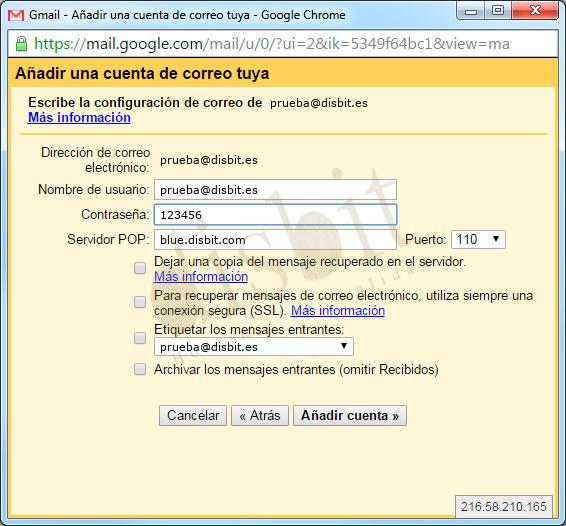 POP3: mail.disbit.es - Puerto 110