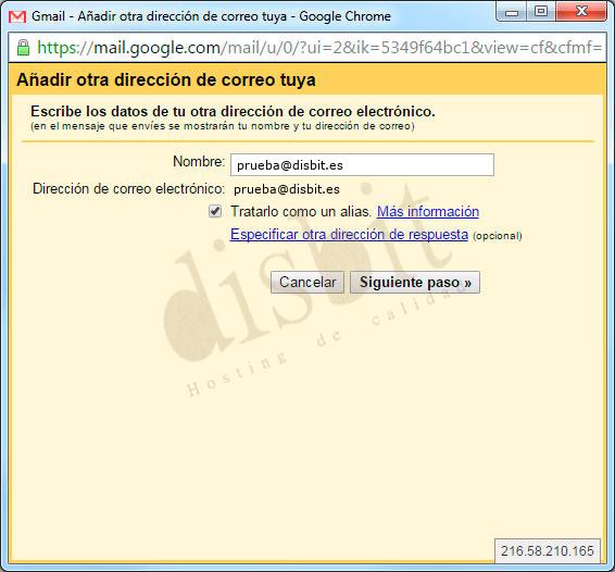 - ● Escribimos el nombre que deseamos que aparezca al enviar los mensajes y hacemos click en "Siguiente paso".